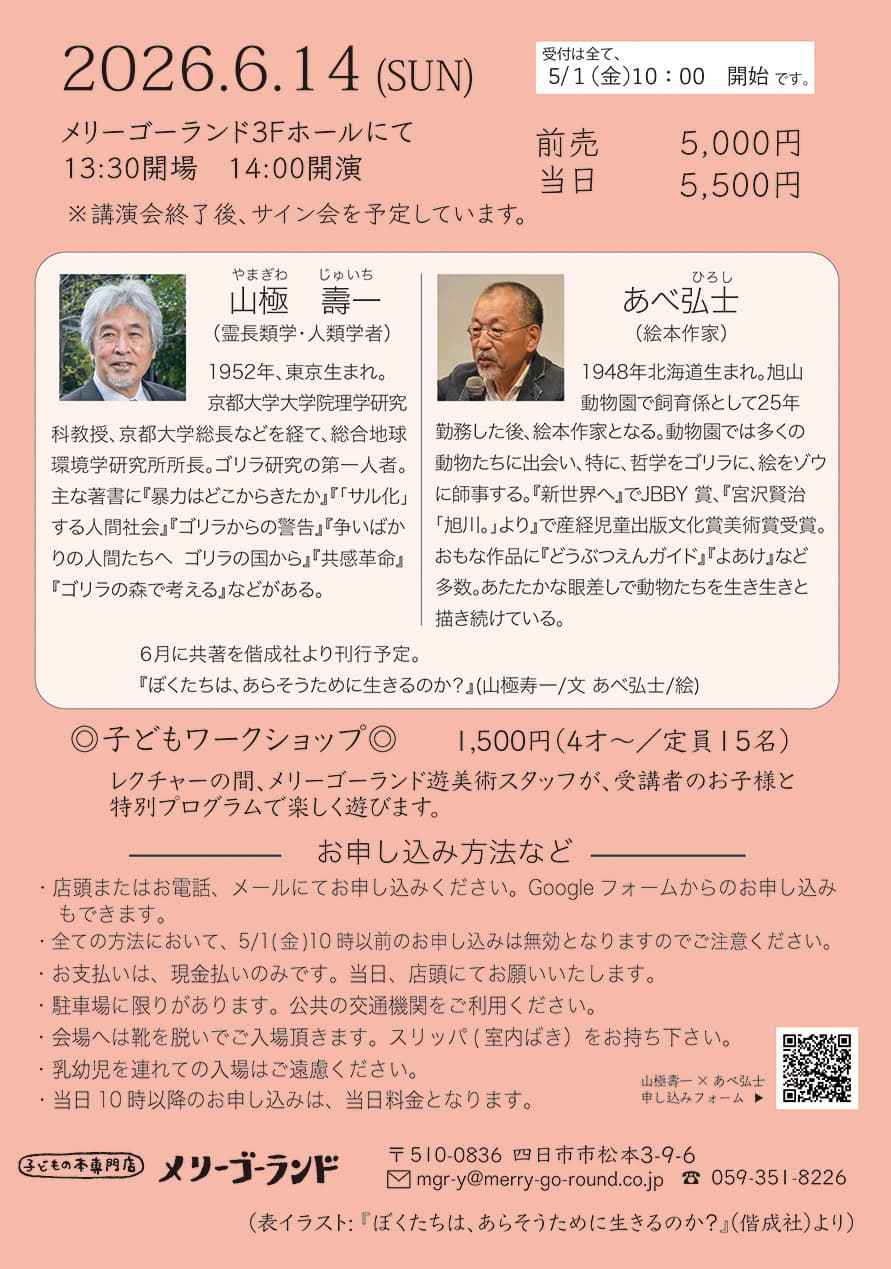 2026年5/17(日)メリーゴーランドLECTURE(講演会) 田島征彦 田島征三