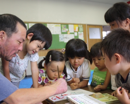 学校や幼・保育園、子育て支援センター等に出張して、ワークショップや