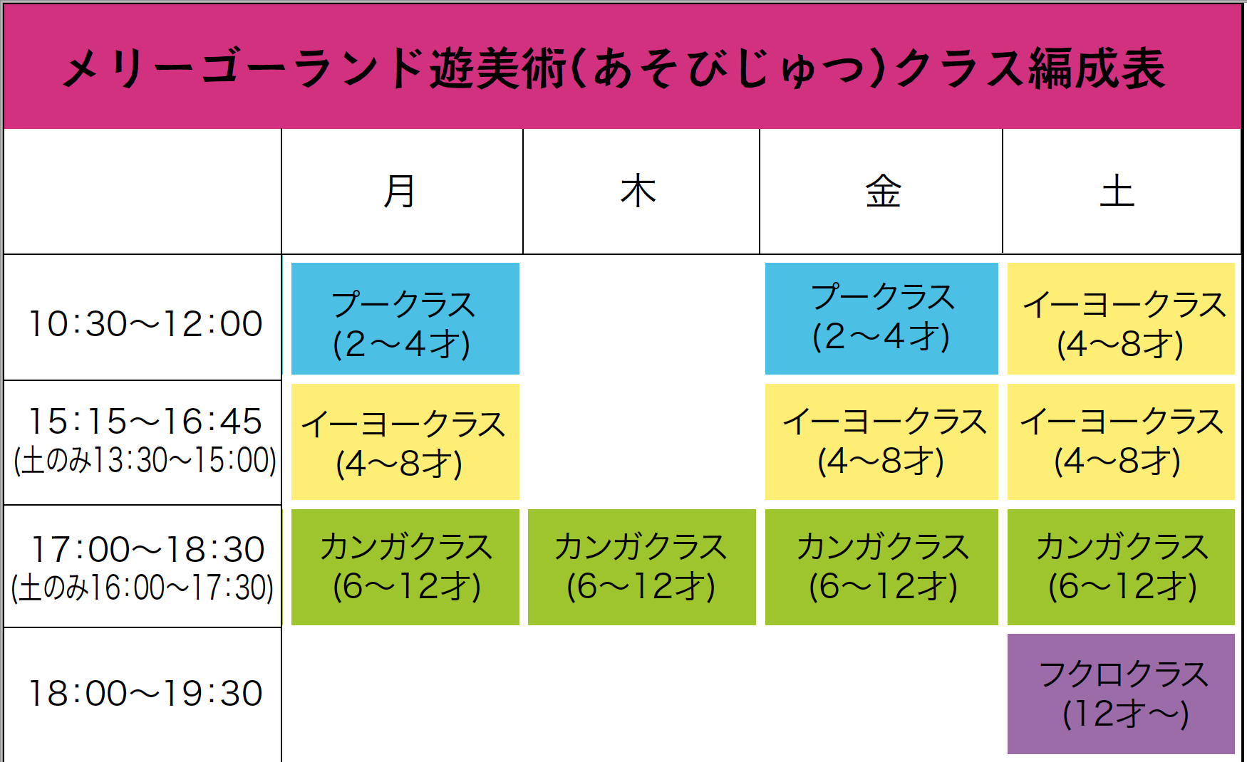 ■左記の表の曜日の中から、プークラスは週2回、