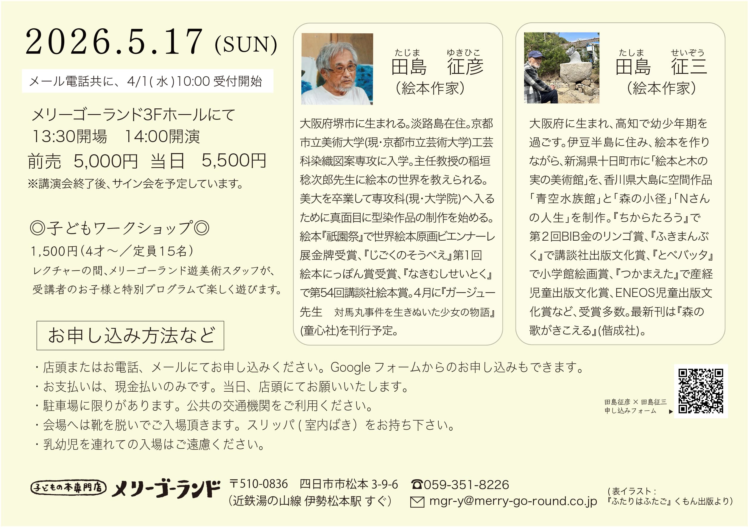2026年5/17(日)メリーゴーランドLECTURE(講演会) 田島征彦 田島征三