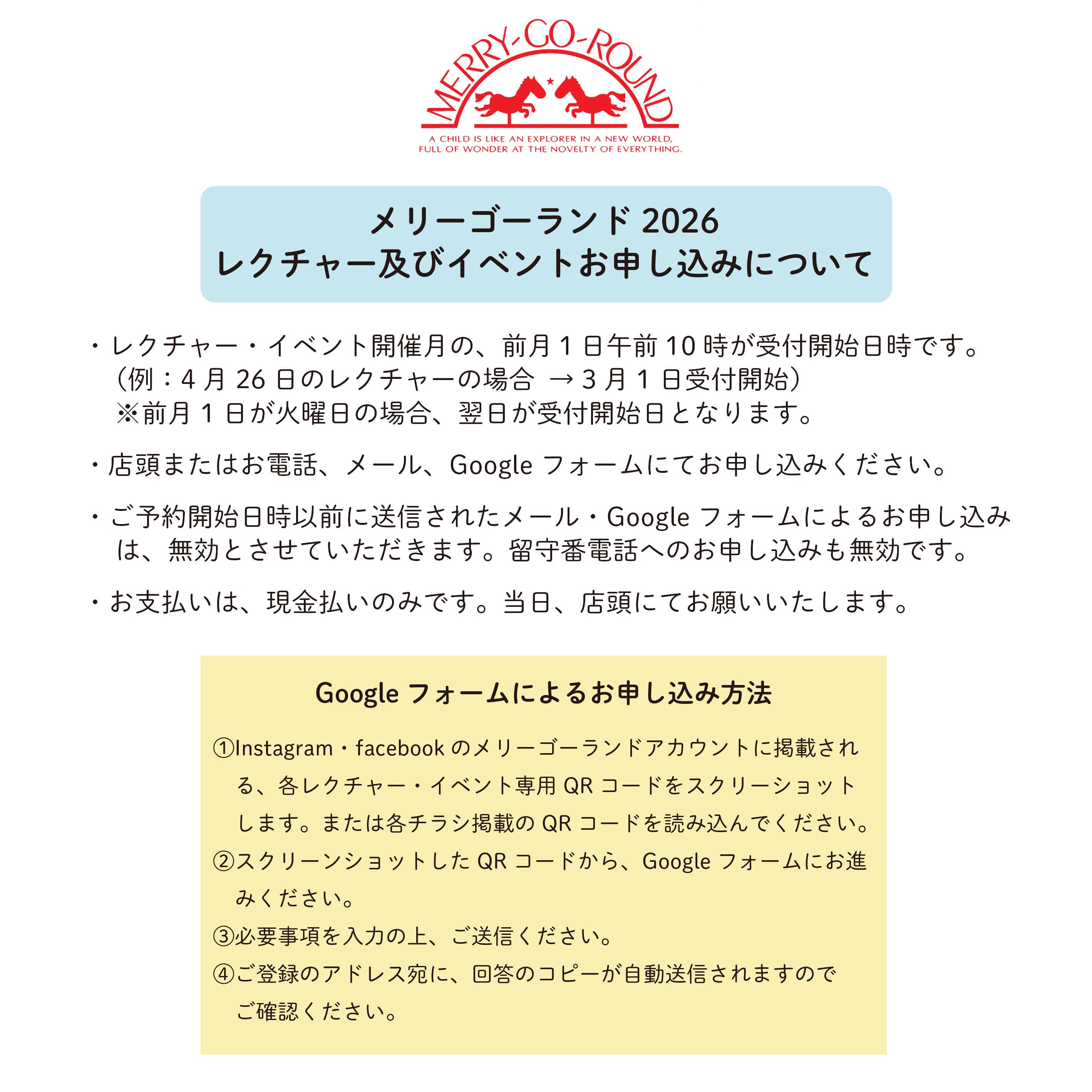 メリーゴーランドのイベント(レクチャー等)へお越し下さる方へ